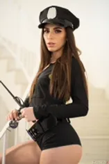 A hot stripper-cop reads Seth's rights before it gets heated